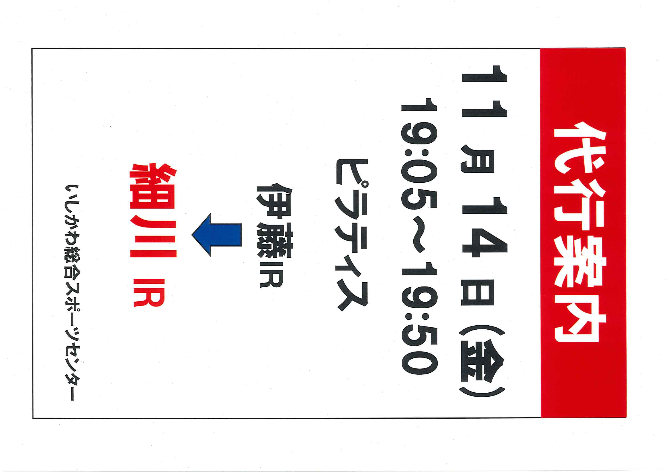 【ISCレッスン】 11月14日(金) インストラクター代行のお知らせ (11/03)
