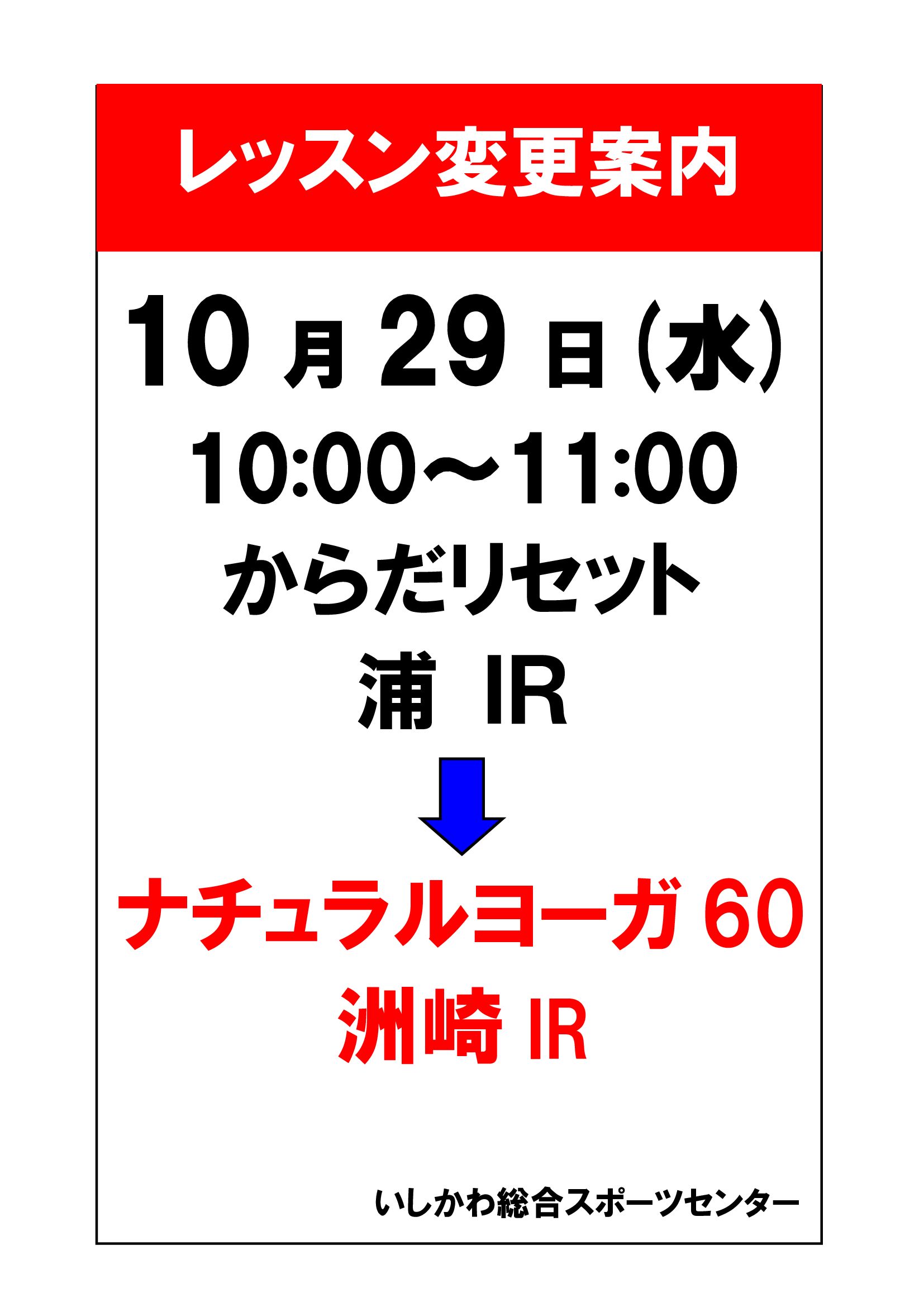 【ISCレッスン】 10月29日(水) レッスン変更のお知らせ