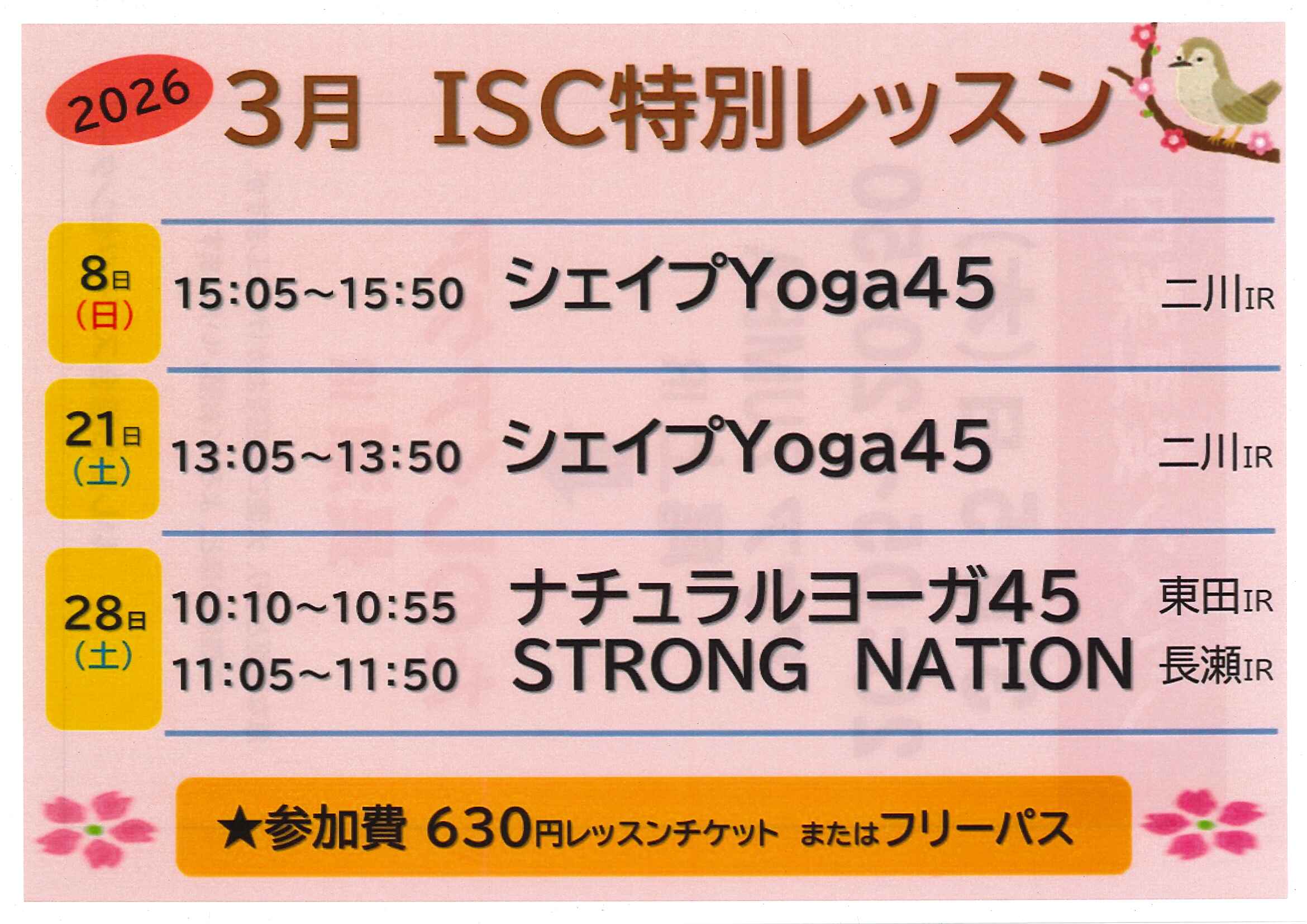 【ISCレッスン】2026年3月スケジュール (02/20)