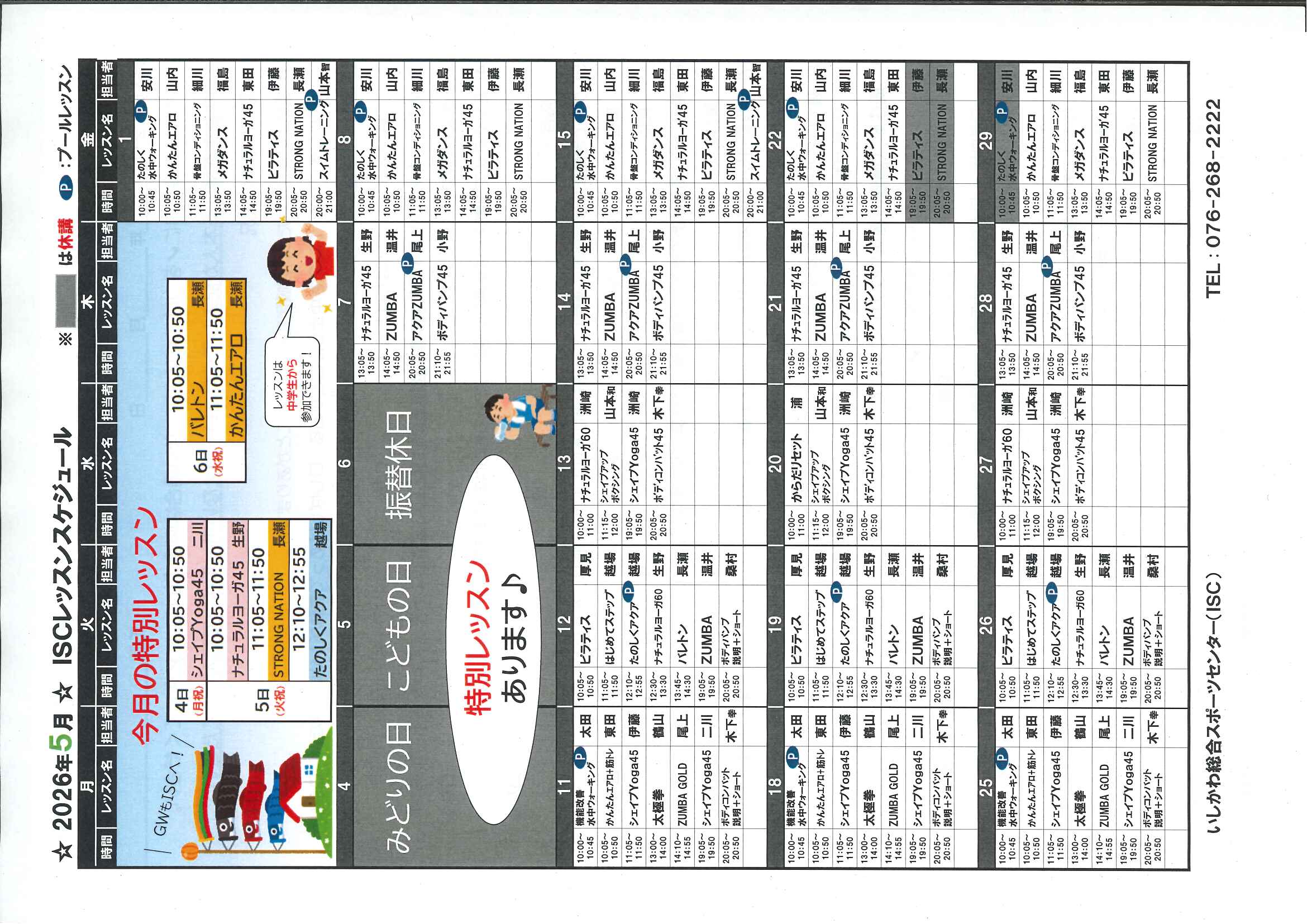 【ISCレッスン】2026年5月スケジュール&特別レッスン (04/20)