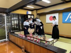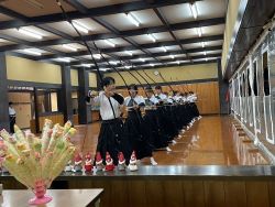 今年の弓道教室最終日を迎え、中高校生はクリスマス射会を行いました。