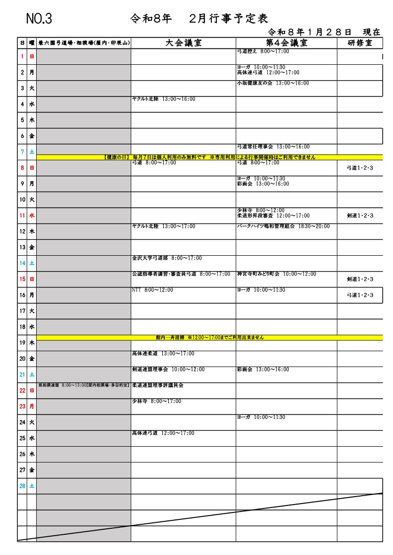 NO.3 兼六園弓道場、相撲場(屋内・卯辰山)、各会議室