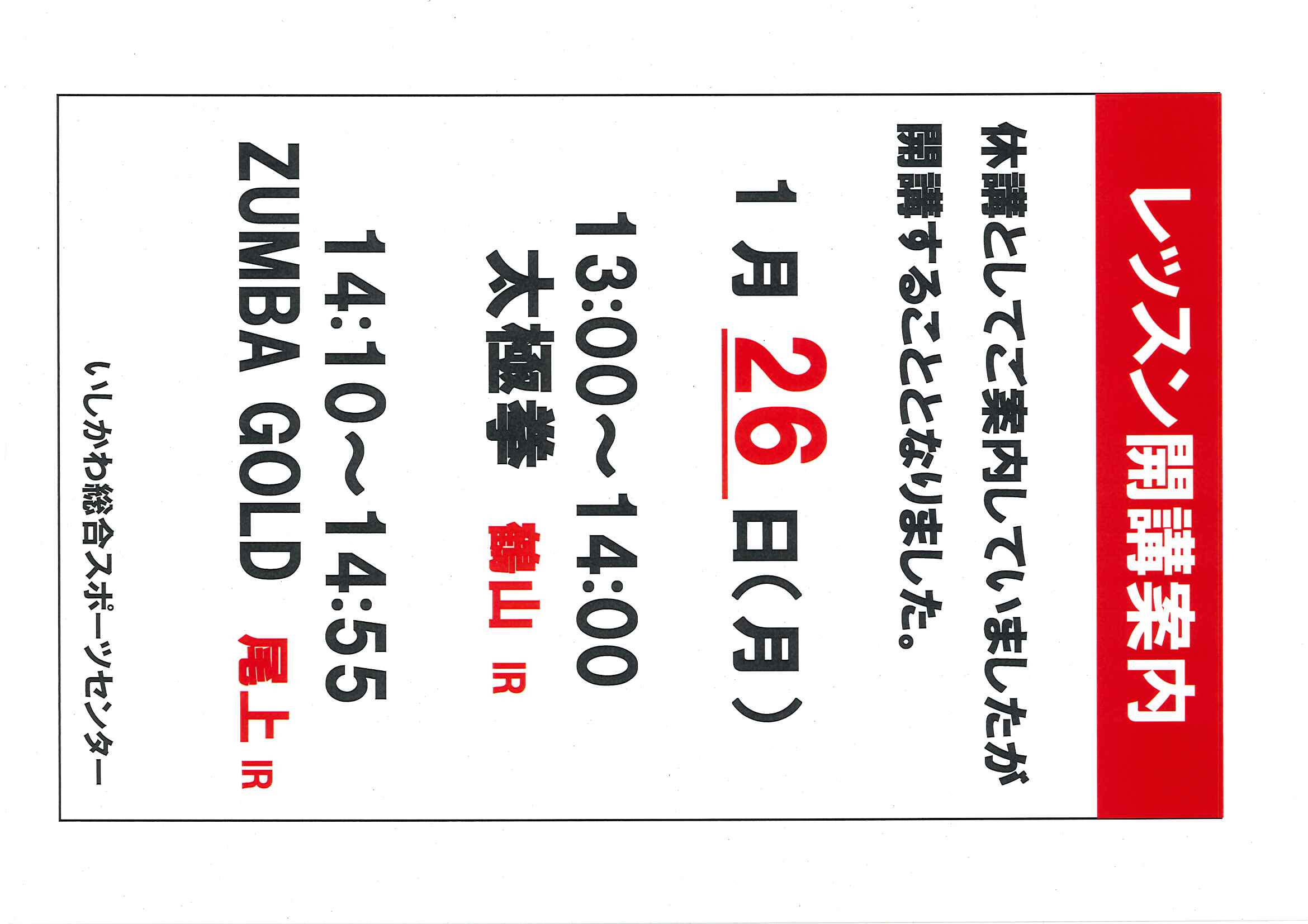 【ISCレッスン】2026年1月スケジュール変更のお知らせ (01/05)
