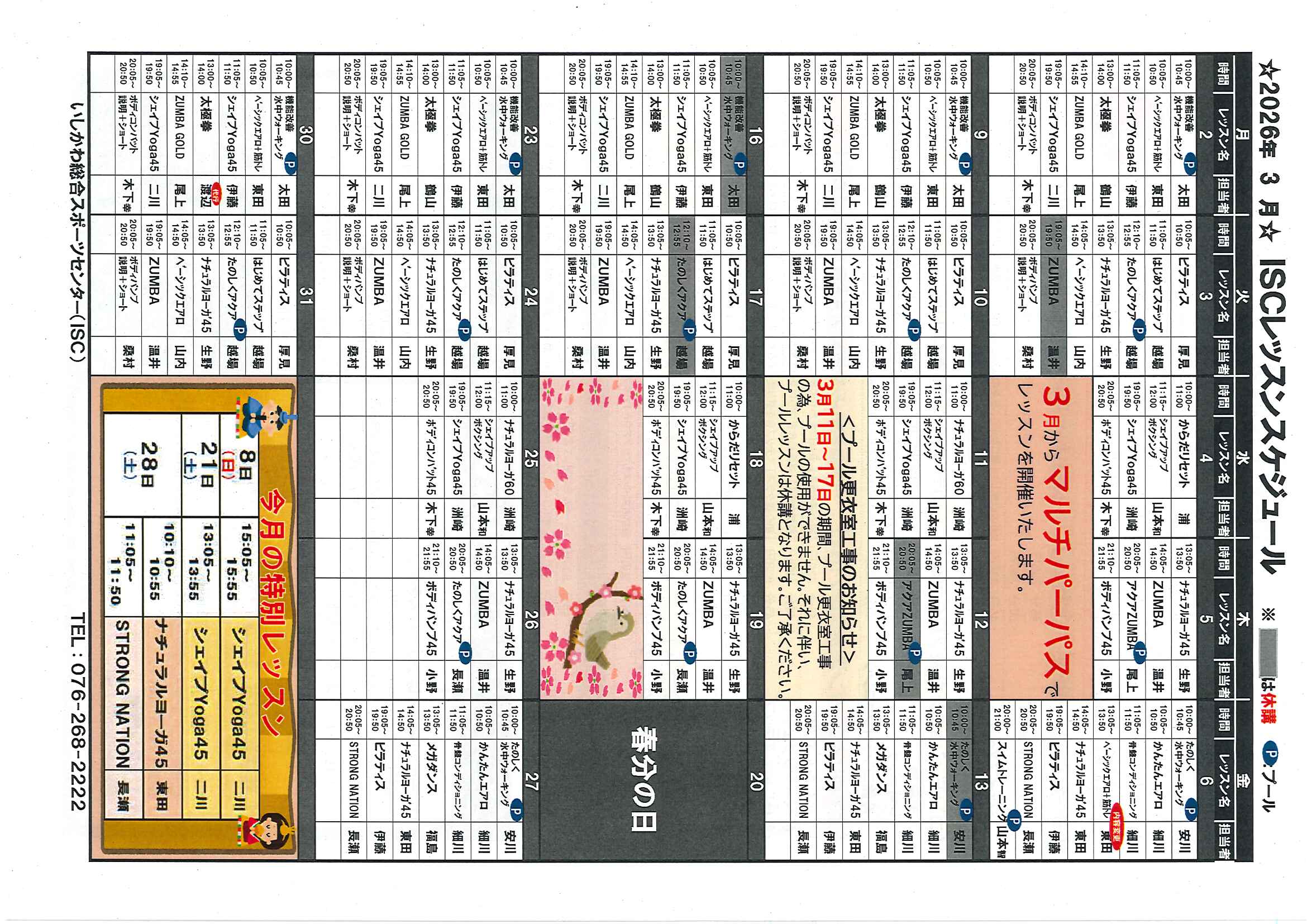 【ISCレッスン】2026年3月スケジュール (02/20)