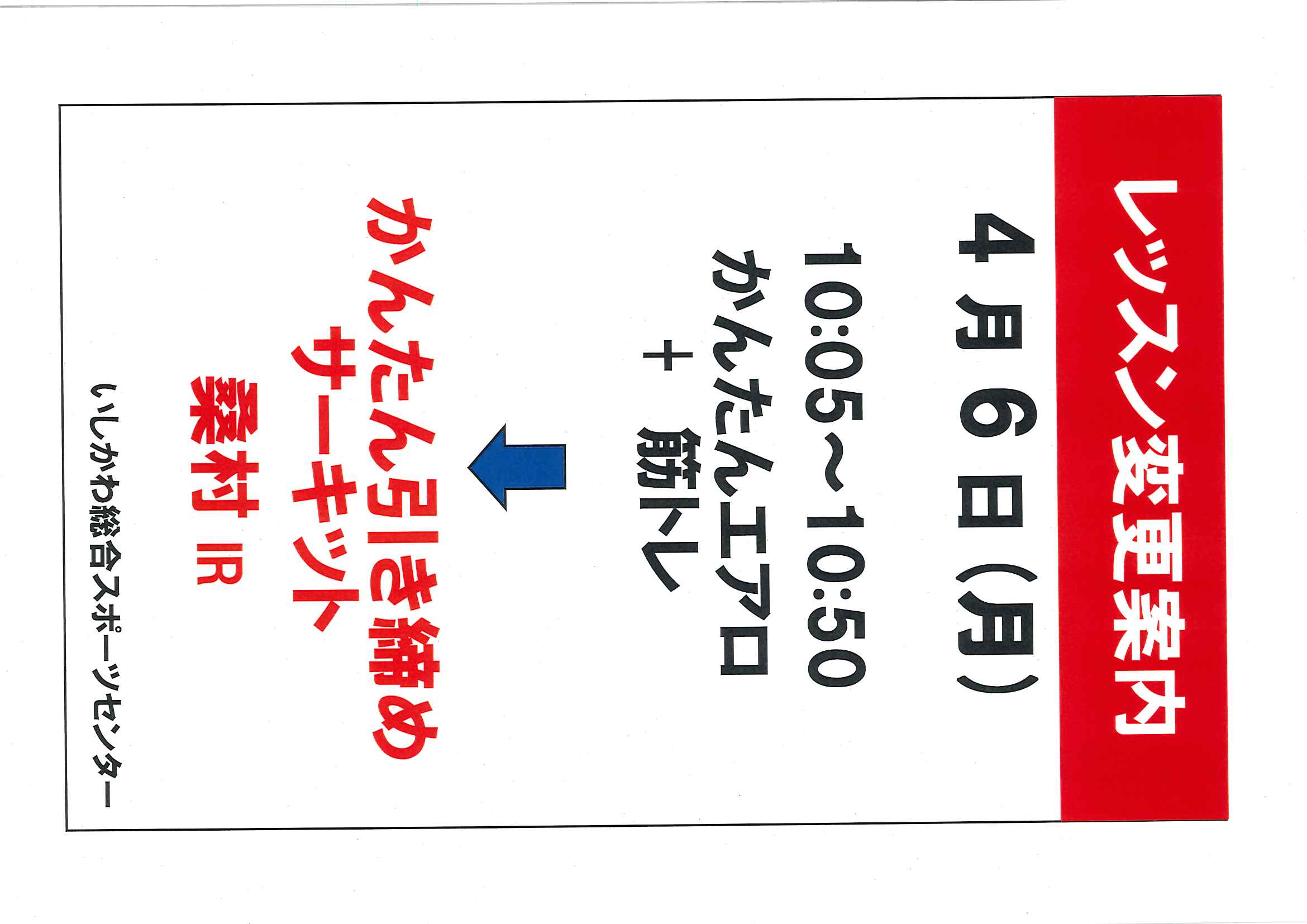 【ISCレッスン】2026年4月6日(月)レッスン変更のお知らせ (04/04)