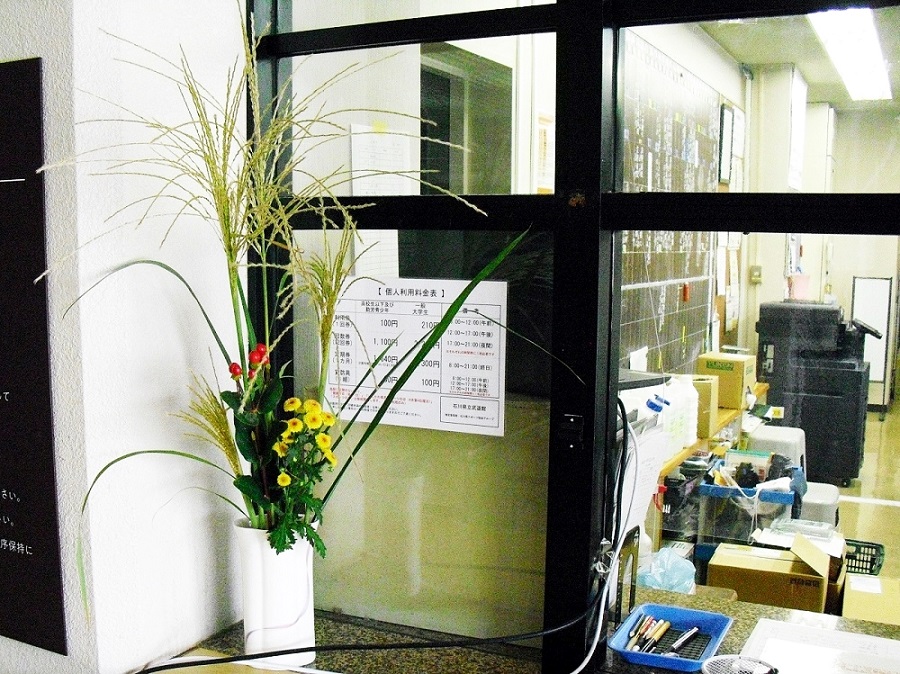 当館受付では、美しくすくすく成長したススキがご来館の皆様をお迎えしております。