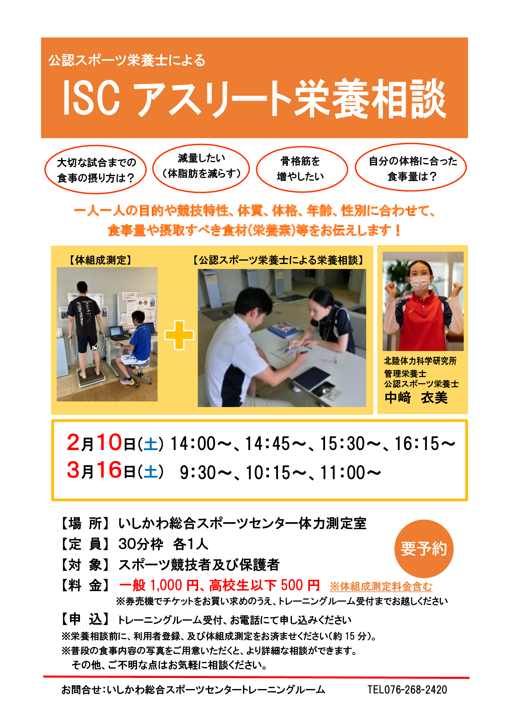 アスリート栄養相談のお知らせ【12月20日(土)】 (11/20)